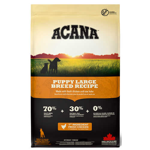 ACANA Puppy Large Breed, gelişmekte olan yavruköpeğinizin sağlıklı, mutlu ve güçlü büyümesi için ihtiyaç duyduğu her şeyi sağlayan bir beslenme için lezzetli yumurtalarla dolu olmasının yanı sıra tavuk ve çiğ pisi balığı içerir.