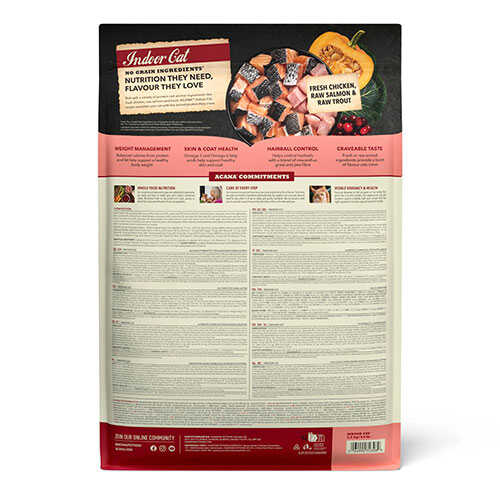 Acana Indoor Sterilised, 3630 kcal/kg enerji içeriğiyle günlük enerji ihtiyacını karşılar. Kedinizin yaşına, kilosuna ve aktivite seviyesine bağlı olarak besleme miktarını ayarlayabilirsiniz.