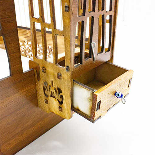 Birdlife Bombeli Lüx Oymalı Ahşap Kuş Kafesi 35x30x17 Cm