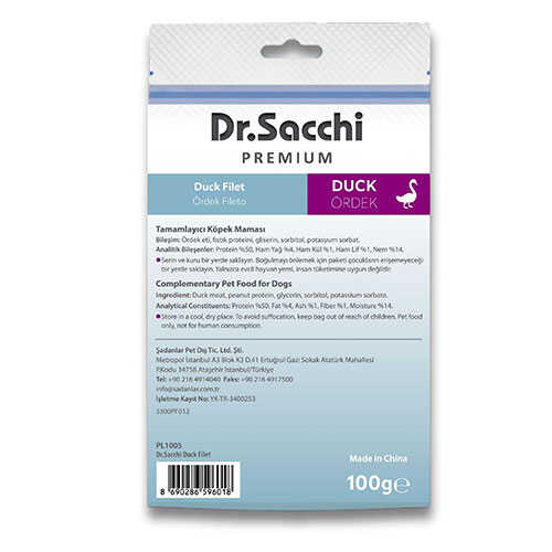 Köpeğinizin mutluluğunu artırmak ve onu sağlıklı bir şekilde ödüllendirmek için Dr.Sacchi Premium Ördekli Fileto Tahılsız Köpek Ödülü 100 Gr, güvenle tercih edebileceğiniz lezzetli bir seçenektir.