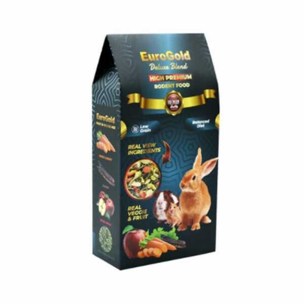 EuroGold Deluxe Kemirgen Yemi, tavşan, hamster, guinea pig gibi tüm kemirgen türleri için ideal bir beslenme sağlar. Seçkin içerik ve %100 doğal bileşenlerden oluşan bu karışım, kemirgenlerin günlük beslenme ihtiyaçlarını karşılamak için özel olarak formüle edilmiştir. Vitamin ve mineraller açısından zengin içeriği, kemirgenlerinizin sağlıklı büyümesini ve gelişmesini destekler.
