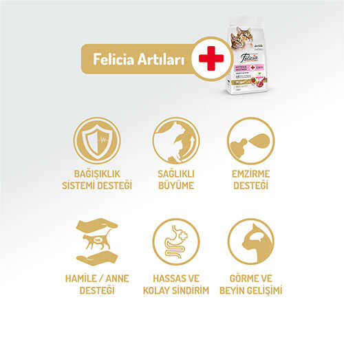 Yüksek oranda sindirilebilir hayvansal protein kaynaklarına sahip Felicia, sindirim ve alerji hassasiyetlerine karşı özel olarak geliştirilmiştir.