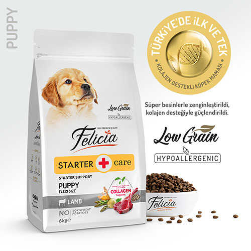 Felicia Small Puppy, gerçek kuzu etinden gelen optimum seviyede protein kaynağı içermektedir. Ayrıca, EPA(Eikozapentaenoik) ve DHA(Dokozahekzanoik) doğal yağ asitleri ile daha sağlıklı kalp, beyin ve sinir sistemi gelişimi sağlar.