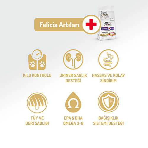 Özel olarak geliştirilen Felicia Adult Cat Sterilised kısırlaştırma sonrası hassaslaşan ve yeme eğilimi artan