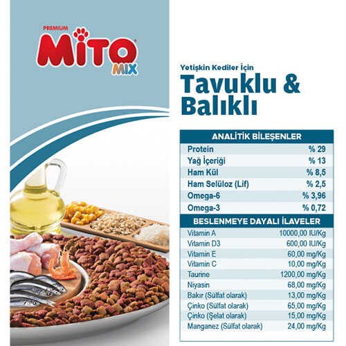 La Mito Mix Tavuklu ve Balıklı Yetişkin Kedi Maması 15 Kg
