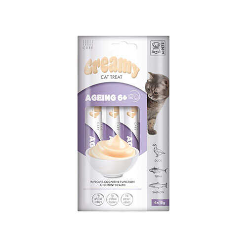 M-Pets Ageing 6+ Krema Kedi Ödül Maması, yaşlı kedinizin yaşam kalitesini desteklerken ona keyifle tüketeceği lezzetli bir ödül sunar. Sağlıklı yaşlanma sürecine lezzetli bir dokunuş katmak için ideal bir seçimdir.