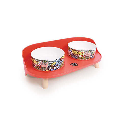 M-Pets Altitude Urban Style Standlı İkili Kedi ve Köpek Mama ve Su Kabı Kırmızı 450 Ml