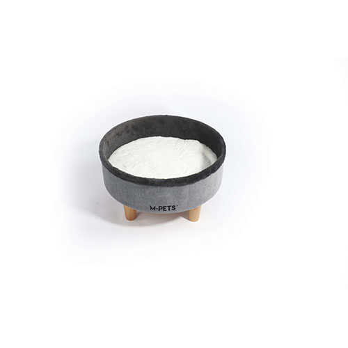 M-Pets Round Elevated Ahşap Ayaklı Kedi Yatağı Gri 47x47x26 Cm