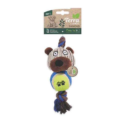 Sancho köpek oyuncağı, geri dönüştürülmüş elyaf dolgu ile üretilmiştir. Dayanıklı yapısı sayesinde uzun süreli kullanım sunarken, çevreye duyarlı köpek oyuncakları arasında öne çıkar. Köpeğinizin diş ve diş etlerine zarar vermeyen yumuşak dokusu ile güvenli oyun imkânı sağlar.