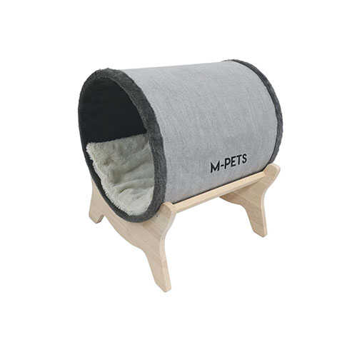 M-Pets Tunnel Elevated Ahşap Ayaklı Kedi Yatağı Gri 47x47x26 Cm