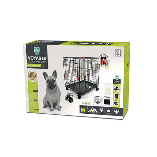 M-Pets Voyager Tekerlekli 2 Kapılı Köpek Kafesi Medium, seyahat, ev içi kullanım ve veteriner ziyaretleri için maksimum konfor ve güvenlik sunmak üzere tasarlanmıştır. Patentli SECURO kilit sistemi ve kilitlenebilir tekerlekleri sayesinde hem köpeğiniz hem de sizin için son derece pratik bir kullanım sağlar. Akıllı köpeklerin açamayacağı şekilde geliştirilen bu özel kilit, tek elle kolayca açılıp kapatılabilir.