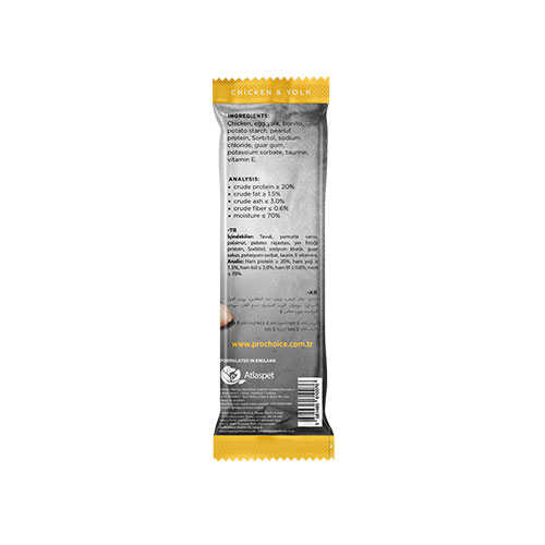 Ürün İçeriği: Tavuk, yumurta sarısı, palamut, patates nişastası, yer fıstığı proteini, sorbitol, sodyum klorür, guar sakızı, potasyum sorbat, taurin, E vitamini.