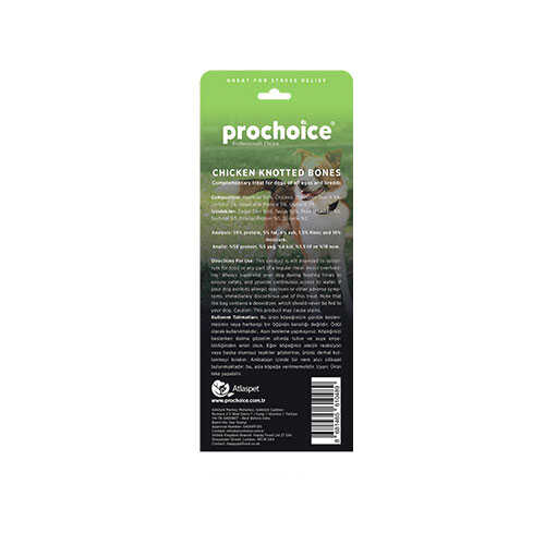 Diş Sağlığına Destek ProChoice Tavuklu Tahılsız Düğümlü Köpek Ödül Kemiği, düğüm şeklindeki tasarımı sayesinde çiğnemeyi teşvik eder ve köpeğinizin diş sağlığını destekler. Dişlerdeki tartar ve plak birikimini engellemeye yardımcı olur, ağız sağlığını güçlendirir.