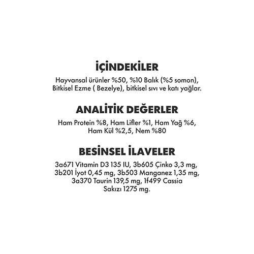 Yüksek kaliteli hayvansal protein (%50) ve somon (%5) içeriğiyle kedinize hem lezzetli hem de besleyici bir öğün sunar.