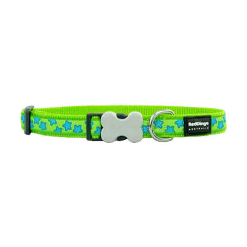 Reddingo Lime Üzerine Turkuaz Yıldızlı Köpek Boyun Tasması (Large, 25 mm, 41-63 cm)