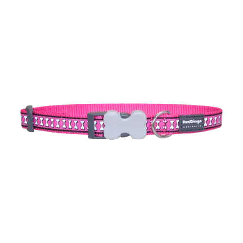 Reddingo Reflektörlü Kemik Desenli Pembe Köpek Boyun Tasması Medium 20 mm 31-47 cm