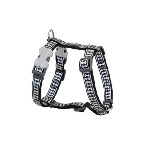 Reddingo Reflektörlü Kemik Desenli Siyah Köpek Göğüs Tasması Large 25 mm