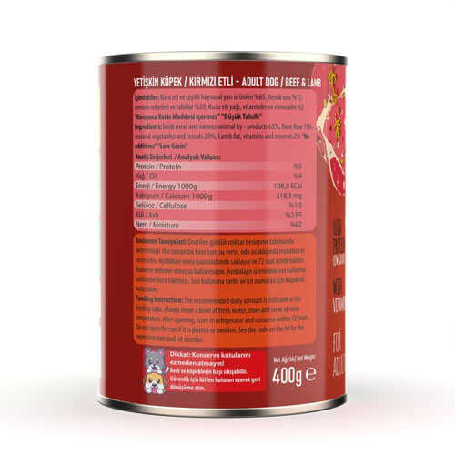 %65 kuzu eti ve çeşitli hayvansal yan ürünleri, %13 kemik unu ve %20 mevsim sebzeleri ile zenginleştirilmiş bu konserveler, köpeğinizin kas gelişimi ve enerji ihtiyacını karşılamaya yardımcı olur. Kuzu eti yağı, vitaminler ve mineraller ile desteklenen formülü sayesinde tüy sağlığını korur ve bağışıklığı güçlendirir.