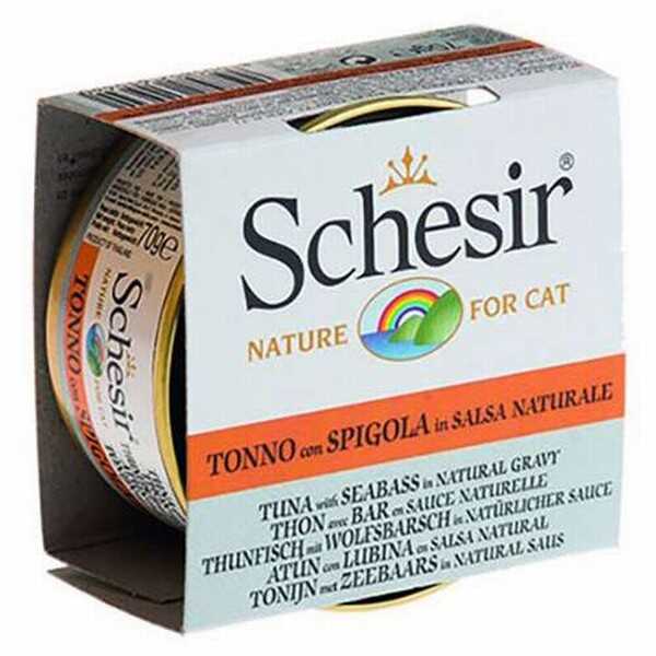Schesir Ton Balıklı ve Levrekli Soslu Yetişkin Kedi Konservesi 6 Adet 70 Gr