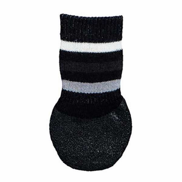 Trixie Köpek Çorabı Kaymaz L-XL 2 Adet SiyahLycra/Lateks takviyeli Pamuklu Kaymaz Köpek Çorabıdır.Trixie markalı bu köpek çorabının diğer çoraplara göre en büyük farkı ön tarafının da tamamen sağlam ve kaymaz olmasıdır. Bu sayede köpeğin yürüyüşü veya koşması sonucu çorabın dönmesi halinde bile çorap kaymaz özelliğe sahiptir. Özellikle yaşlı (9+) köpekler için de uygundur. Patilerin korunması gereken durumlar için idealdir. Pati altlarını mükemmel korur. Evde yaşayan köpeklerin tırnaklarıyla parke, mobilya vb yerlere verdikleri zararı ortadan kaldırır, yürürken çıkardıkları sesi minimize eder. Ev kullanımı içindir. Dış mekana uygun değildir. Siyah renklidir.