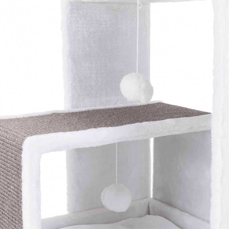 Trixie Kedi Tırmalama ve Oyun Evi 101cm Beyaz GriModern tasarımlı, yatak ve platform kenarları süet görünümlü, içleri peluş, bir bölümü tamamen doğal sisal kaplama tırmalama alanı olan kedi tırmalama ve oyun evidir. Yatak bölümü çift taraflıdır ve elde yıkanabilir. Taban alanı 58x58cm yükseliği 101cm dir. Gri ve beyaz renklidir. Üzerinde çok güzel ve modern kedi figürü bulunmaktadır.