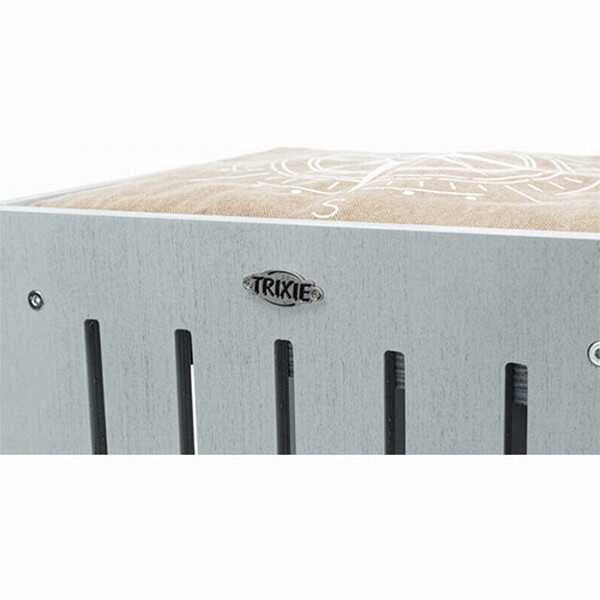 Trixie Kedi Tırmalama ve Oyun Evi 77cm Gri Kum BejiAhşap bölümleri gri boyalı ve vernikli plywoodtan üretilmiş kedi oyun evidir. Kullanılan tüm malzemeler kedi sağlığına zarar vermeyecek, Avrupa Birliği standartlarındadır. Taban alanı 38x38cm dir. Yüksekliği 77cm dir. Oyun evi içerisinde yer alan her üç yatakta çift taraflı kullanılabilir ve elde yıkanabilir. Avrupa Birliği'nde üretilmiştir.