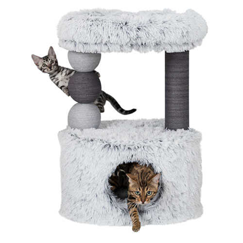 Trixie Kedi Tırmalama ve Yatağı 73cm GriÜst tarafı ve alt iç tarafı kedi yatağı olan kedi tırmalama ve oyun evidir. Tırmalama alanları jut, diğer tüm alanlar uzun tüylü peluştur. Kedi yatakları çıkarılabilir ve elde yıkanabilir.