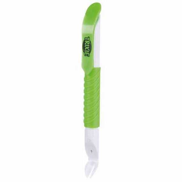 Trixie LED Işıklı Kene Çıkarma Kalemi 14cmKedi ve köpeklerde kenenin çıkarılması için kullanılan ışıklı kene çıkarma kalemidir. Plastiktir. Kenenin kolayca ve güvenli şekilde çıkarılmasını sağlar ve tehlikeli patojenlerin bulaşmasını önler. Uc tarafındaki led ışığı sayesinde kenenin rahatça görülebilmesini ve rahatça çıkarılabilmesini sağlar. Kullanışlı boyutu ve askı bölümü sayesinde önlüğe, cebe takılabilir. Kullanım Talimatı : Kene etrafındaki tüyleri nazikçe kenara doğru ayırın ve keneyi tam görünür hale getirin. Trixie kene çıkarm kalemi ucundaki LED ışığı açın. Kalemin uclarını deriye nazikçe temas ettirerek, yumuşakça kenenin tamamı kalemin dişleri tarafından düzgünce tutulana kadar ilerletin ve durun. Keneyi yumuşak ve yavaş bir hareketle yukarı doğru kaydırarak çıkarın ve deriyi dezenfekte edin. Eğer kene tamamen çıkmaz, çıkaramazsanız muhakkak Veteriner Hekime danışınız.