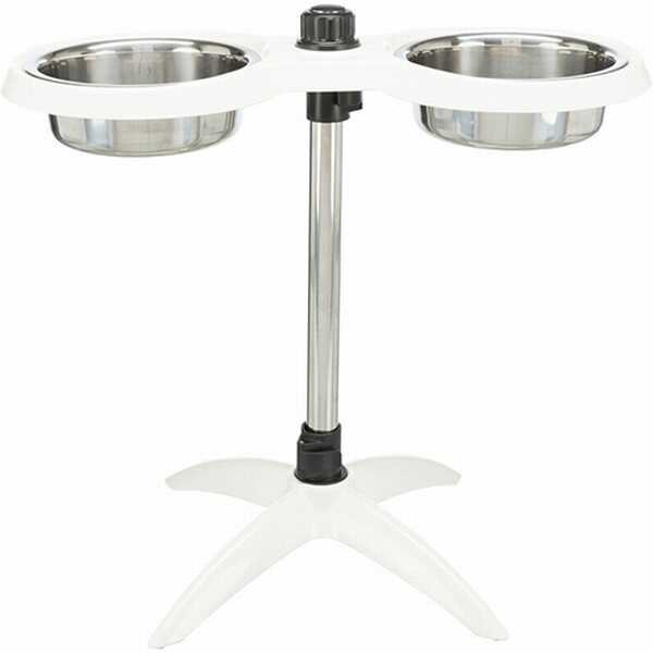 Trixie Köpek Ayaklı Mama ve Su Kabı Melamin Paslanmaz Çelik 2×1,6Lt 21cmHızlı ve kolay ayarlanabilir mekanizması ile çok kullanışlı ve şık ayaklı, ayarlanabilir köpek mama ve su kabıdır. Her iki tarafındaki mama ve su kabı paslanmaz çeliktir. Yedek alınmak istendiğinde Trixie 24754 veya 24755 satın alınabilir. Çok kolay şekilde ve hızlıca yükseklik ayarı yapılabilir. Mama ve su kabı ayakları altındaki kauçuklar sayesinde kaymazdır. Bulaşık makinasında yıkanabilir.2×1,6Lt Çap21cm