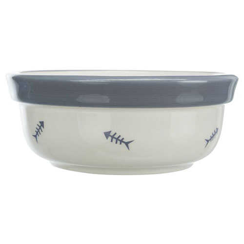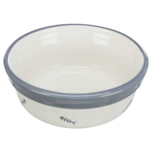 Trixie Seramik Kedi Mama ve Su Kabı 0,3 Lt 12 Cm Beyaz Mavi Gri