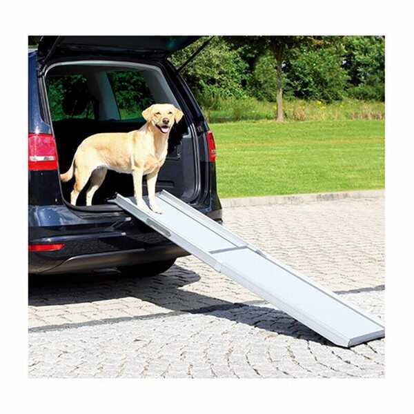 Trixie Köpek Rampası Teleskopik 43x100-180cm120 Kg'a kadar taşıma kapasitesine sahiptir. Alüminyum ve plastik malzemeden imal edilmiştir. Üzeri kaymaz malzeme ile kaplıdır ve yanlarında emniyet rayları vardır. Yüksek yerlerden inip çıkarken köpeklerinizin eklemlerini korur, eklem problemli ve yaşlı köpeklerinizin kolayca inip çıkmasını sağlar. Arthrosis ve artrit rahatsızlığı bulunan köpekler için şiddetle tavsiye edilmektedir. Ayarlanabilir boyu sayesinde iniş açısı da ayarlanabilmektedir. Rampa toplam ağırlığı 5,8 Kg'dir ve çok kolay temizlenebilmektedir.