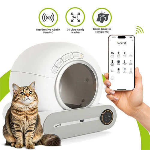 Wero Akıllı Otomatik Kedi Tuvaleti 65 Lt Karbon Filtreli, Sensörlü, Uygulama Kontrollü