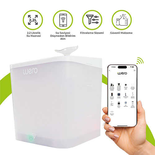 Wero mobil uygulaması üzerinden su seviyesi, filtre değişim süresi ve UV lamba ayarlarını kolayca takip edebilirsiniz. Su seviyesi azaldığında telefonunuza bildirim gelir, böylece minik dostunuz hiçbir zaman susuz kalmaz.