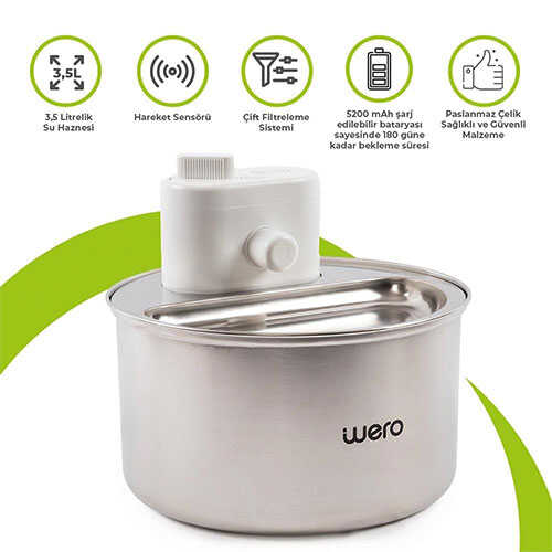 Wero Paslanmaz Çelik Hareket Sensörlü Otomatik Kedi Köpek Su Şelalesi Su Pınarı 3,5 Lt Beyaz