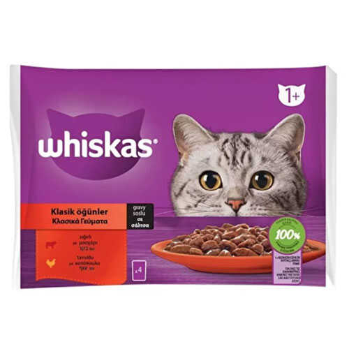 Whiskas Pouch Sos İçinde Sığırlı ve Tavuklu Yetişkin Kedi Konservesi 4 Adet 85 Gr